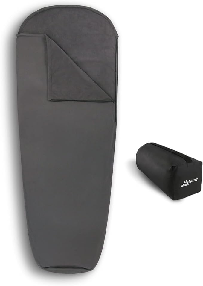 All Season Fleece Sleeping Bag Liner Adds Up to 27°F/ 15°C, Lightweight Mummy Sleeping Sack for Cold Weather and Winter Backpacking, Camping, Traveling with Drawstring Hood and Stuff Sack E629