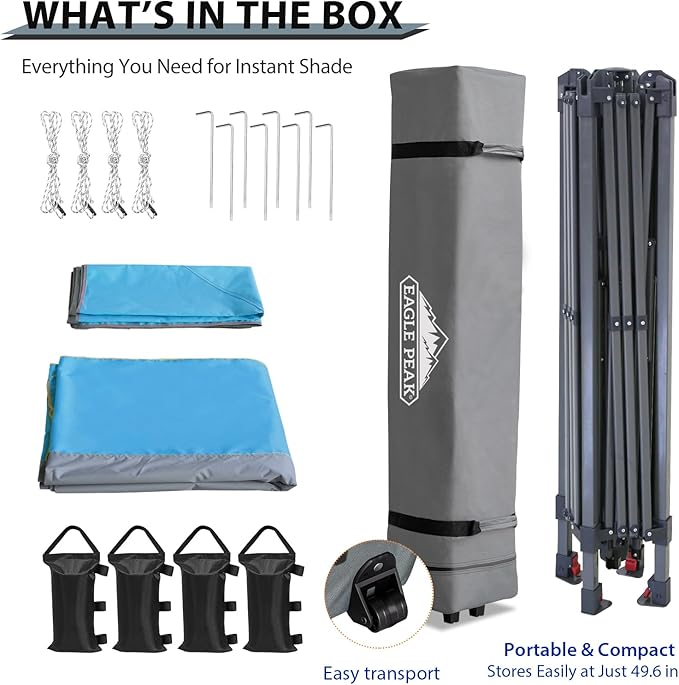 - EAGLE PEAK PROMISE: EAGLE PEAK offers a 1-year limited after sale protection from the original date of purchase. Unlike many other canopy manufacturers, EAGLE PEAK offers this for our frames, canopies and bags! If you have any other questions, please contact our professional service team