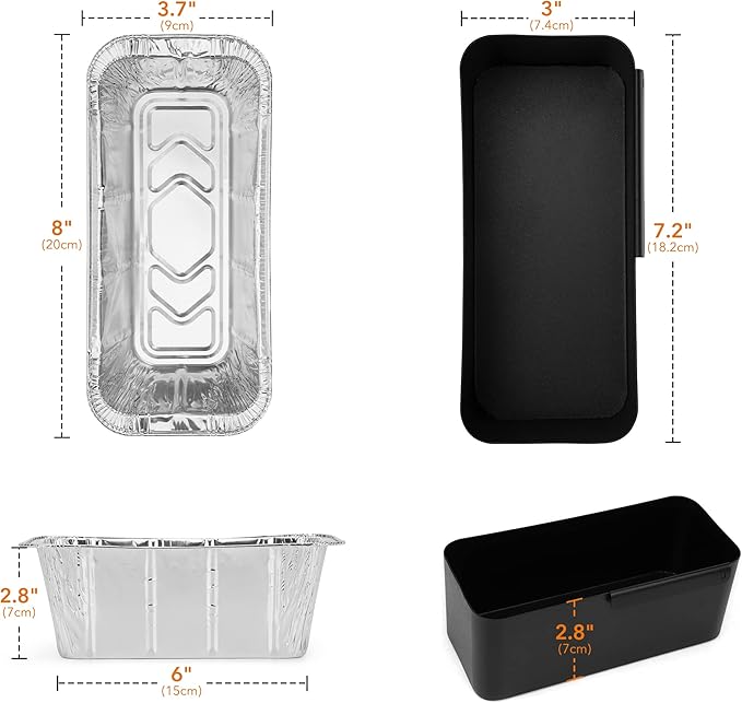 - 【DIMENSIONS】 - Grease cup meausres 7.2" x 2.8" x 3", each liners measures 8" x 3.7" x 2.8".