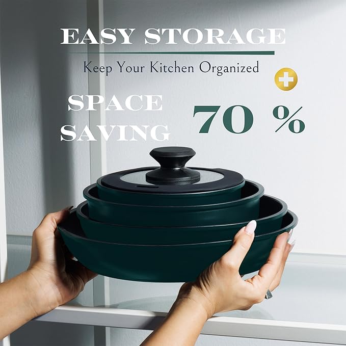 - Durable Nonstick Cookware Set: Our kitchen pots and pans set is made from top-quality materials, thick aluminum, which is stable. The edges are smooth to ensure the detachable handles are tightly held and safe. Our kitchen cookware sets are non-toxic and free from PTFE and PFOA.