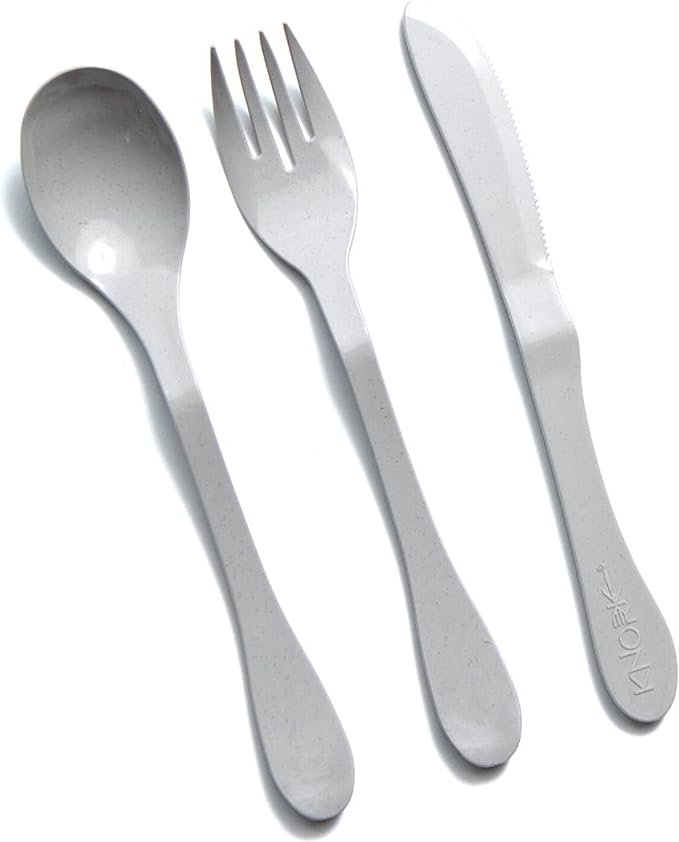 KNORK Eco 24 Piece (Fork, Knife, Spoon) Plant Based CutleryBamboo Reusable Flatware Set, Gray