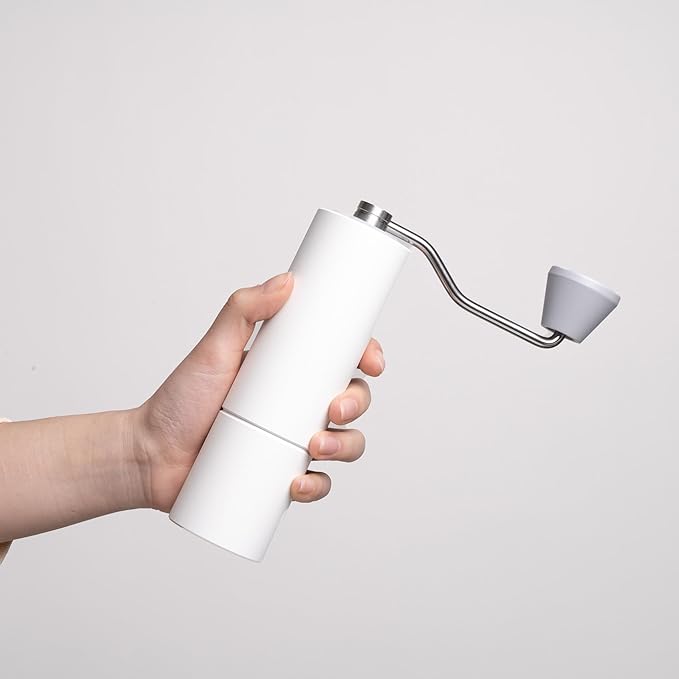 - [ Easy Clean & Carry ] Coffee grinder body weighs 700g, while maintaining a lightweight and a moderate sense of weight and luxury. It is ideal not only for home use but also for carrying outdoors or traveling. Easy to disassemble for cleaning - just be cleaned by brush