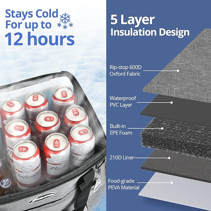 - EXTRA LARGE CAPACITY - Extra-large size yet weighs only 1.65 lbs. The Maelstrom Icy Hollow Soft sided cooler will hold up to 75 cans of your favorite drinks plus 2-4 ice packs; or with 60 cans you can add 15 lbs. of ice for long lasting coldness. Whether it's camping, hiking, picnicking, or a BBQ party, the cooler bag easily packs a lot of food, fruits, beer, meat, or even seafood together. It’s large enough to carry all picnic essentials for the whole family!