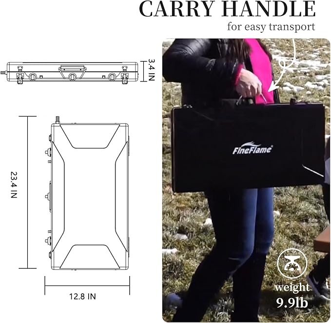 - PORTABLE: This 3-burner portable camping stove comes with a carry handle that allows you to carry it conveniently. It has a compact structure and weights only 10lbs which makes it even easier to carry it around. It can be taken along in a luggage or storage box, or even large tote bag, so carrying this portable propane camping stove is a breeze thing to do! Size: 23.4”x12.8”x3.4", Weight:9.9 LB