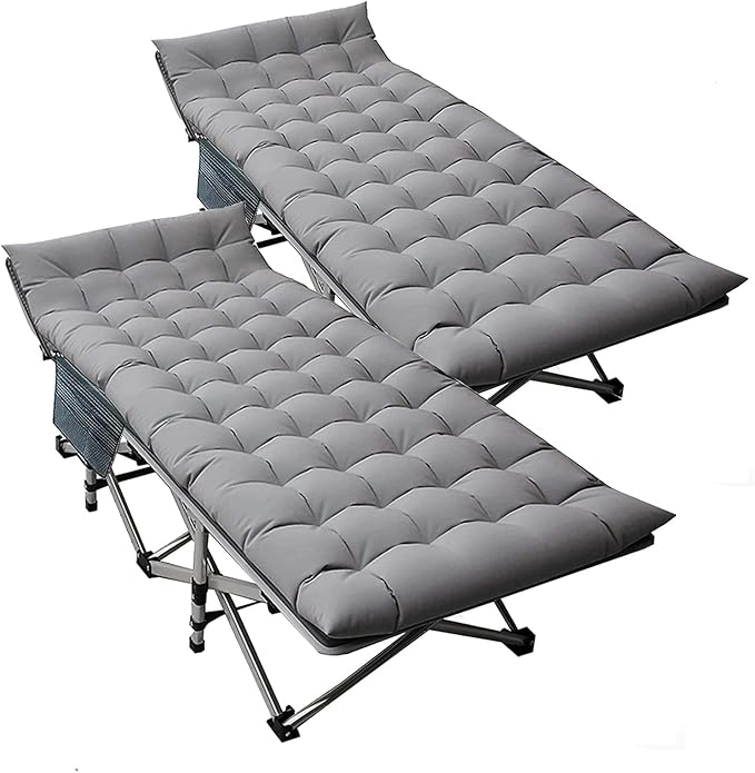 DoCred Folding Camping Cot with Mattress, 2 Pack Heavy Duty Folding Cot for Adults, Portable Sleeping Cot Bed Adults Outdoor Bed with Carry Bag, Travel Camp Cots