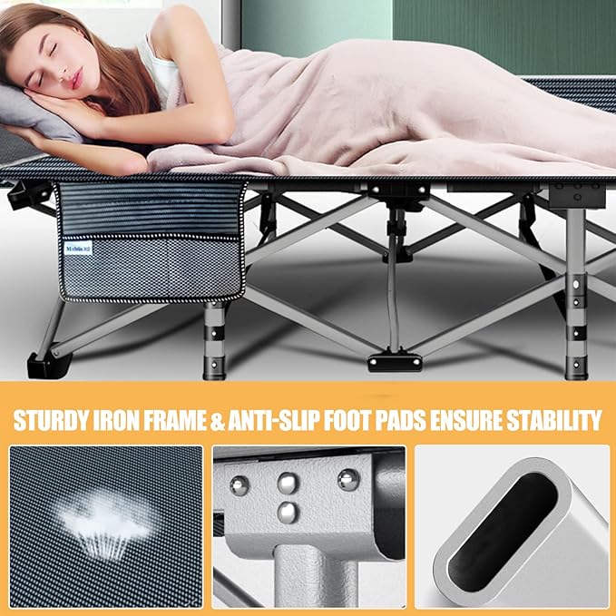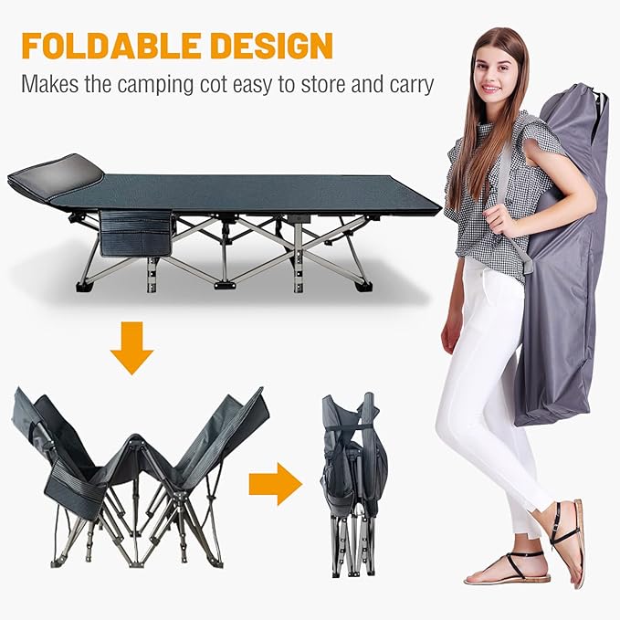 - PREMIUM FABRIC: This portable folding cot is made of 1200D Oxford fiber, which is super strong and easy to clean; Make it more durable and can last longer;