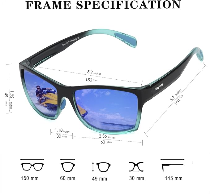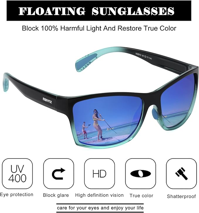 - FLOATING SUNGLASSES-Frame made of “unsinkable plastic,” never lose your sunglasses again while on the water. You can enjoy the good time in the lake,river and ocean