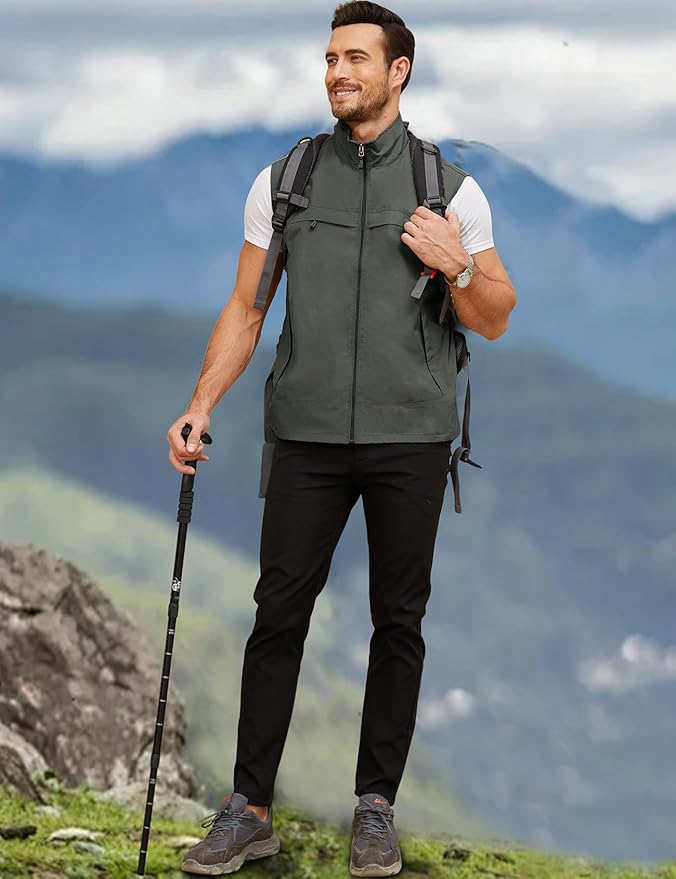 Gihuo Mens Casual Lightweight Travel Vest Summer Utility Safari Vest Sleeveless Jackets for Travel Hiking Fishing