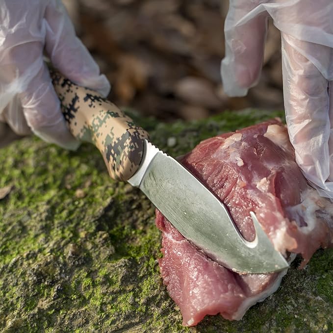 - 【High-quality Materials】Jellas Hunting Gear blades are made of 5Cr steel and treated with rust prevention, all the blade is made of 5Cr Steel, the hardness can reach 58HCR, which allowing you to easily cook all kinds of prey. Sharp and durable blade can improve the cutting speed and improve the hunting efficiency.