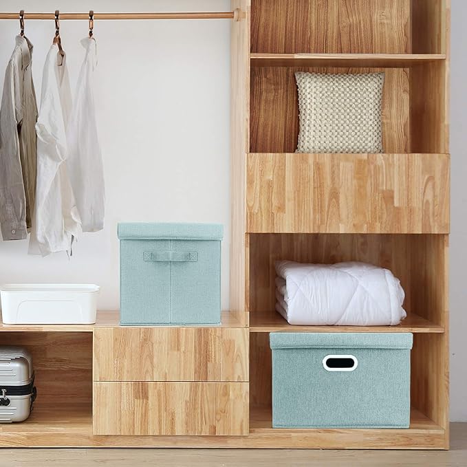 TYEERS Large Storage Bins with Lids, Collapsible, Washable, Fabric Storage Boxes for Organizing, 17.3x11.8x11.4 inches, 3 Pack, Aqua Spring
