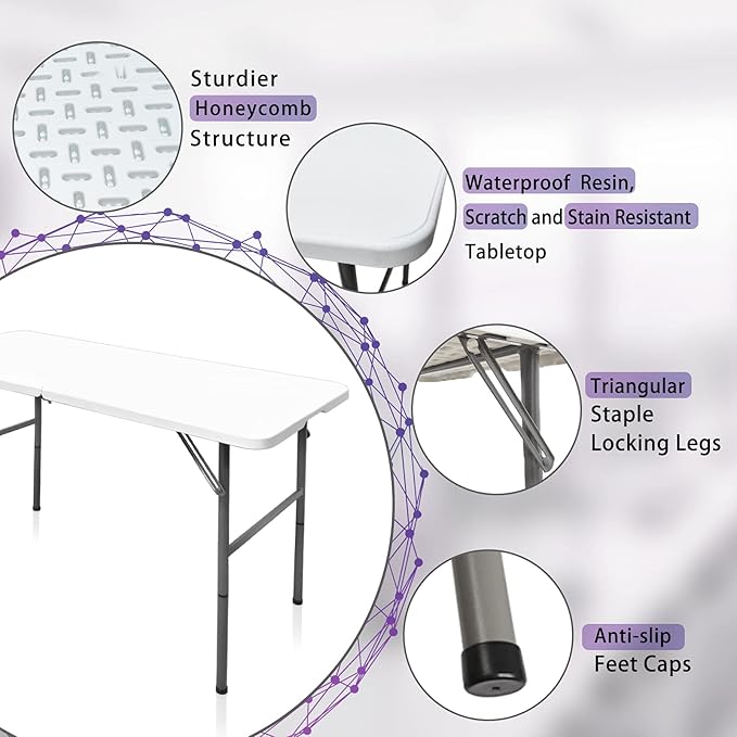 - Simple & Sleek Design:The white minimalist design makes this outdoor folding table blend in with any scene, and the size is suitable for 2-6 people. It offers a perfect space for cards, puzzles, games, crafts, picnic and more.