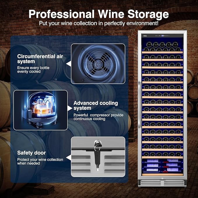 Upgraded 190 Bottles Wine Cooler Refrigerator,24 Inch Wide Wine Fridge with Professional Temperature Control System, Freestanding or Built-in installation, Quiet Operation