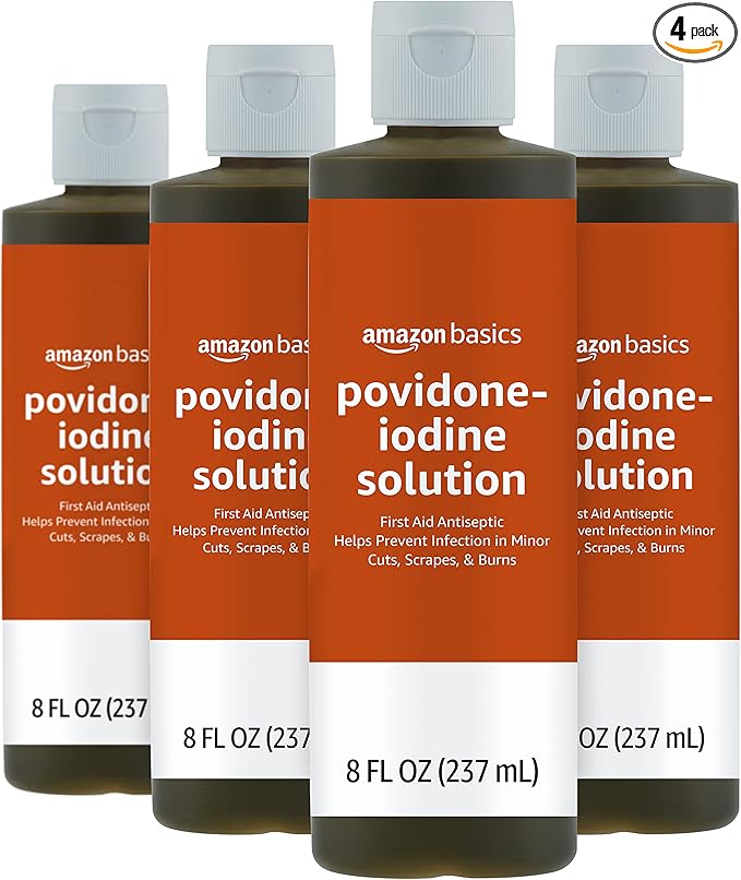 Amazon Basics First Aid Antiseptic, 10% Povidone Iodine Solution, 8 Fl Oz, Pack of 4
