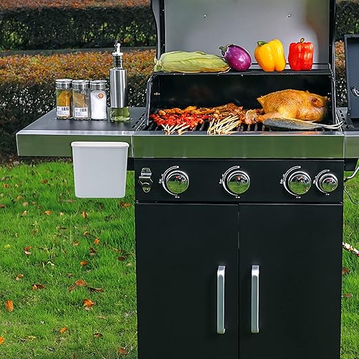 Skyflame Magnetic Hanging Trash Can, 2.1 Gallon Plastic Garbage Container, Multi-Function Grill Hanging BBQ Utensils Organizer Holder, Use for Kitchen/Bedroom/Bathroom/Camping/Grills