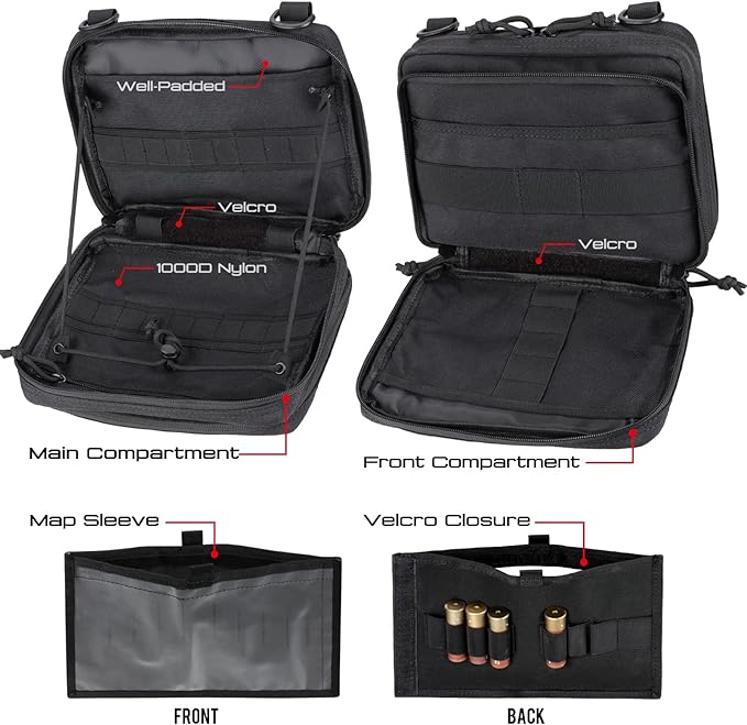 - OPEN FLAT TO QUICK ACCESS: Tactical Admin Pouch's main compartment can open flatly to let you work in a desk setup, you can hold in any position with the edge-to-edge retention cord. Two side retention straps for quick access to the pouch without full-opening.