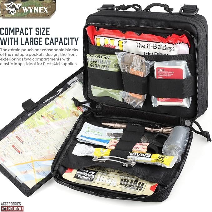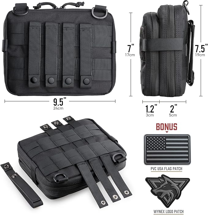 WYNEX Tactical Large Admin Pouch of Double Layer Design, Molle EDC EMT Utility Pouch with Map Sleeve Modular Tool Pouch Large Capacity Flag Patch Included