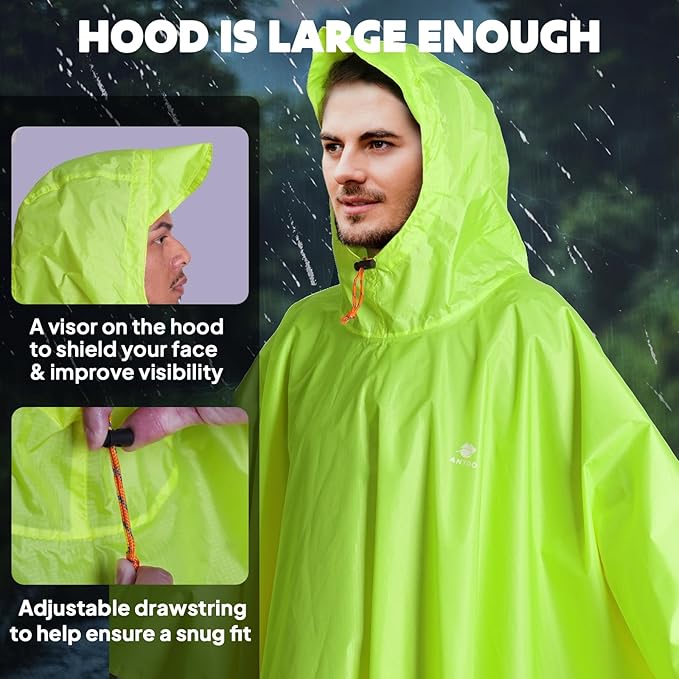 ANYOO Hooded Rain Poncho for Adults Waterproof Lightweight Rain Coat for Men Women Reusable Rain Jacket for Emergency Outdoor