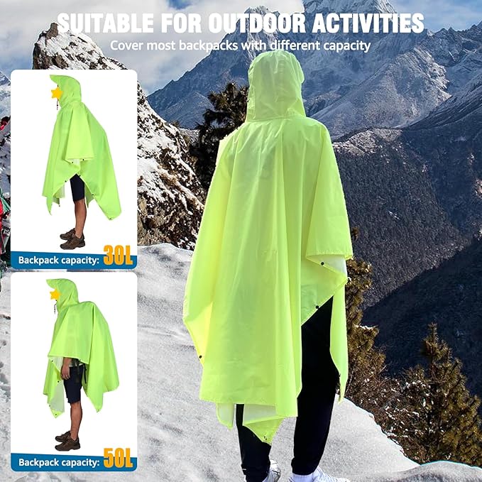 - Breathable & Comfortable: Don't worry that it will make you very hot because the arm holes & bottom are loose enough to allow air circulation.The size is large enough to cover up a backpack as well. It can help keep your backpack dry and prevent water from seeping through and damaging your items. It offers excellent freedom of movement, which makes it very comfortable to wear. Adjusting the snap fasteners on each side it can accommodate a range of body sizes and shapes.
