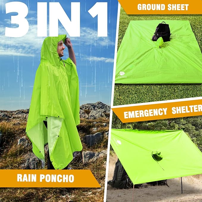 - Multipurpose: The three in one multi-functional poncho can be used as floor mat, cape,a simple shelter and canopy.The poncho has eyelets on the hem for building a poncho shelter or a ground sheet, and hook & loop fasteners on the sides allowing you to use it as a sleeping bag cover.It can also provide a barrier against wind or serve as a makeshift shelter if needed. Good for the traveler, outdoor enthusiast, or for any outdoor activity with rain on the horizon.