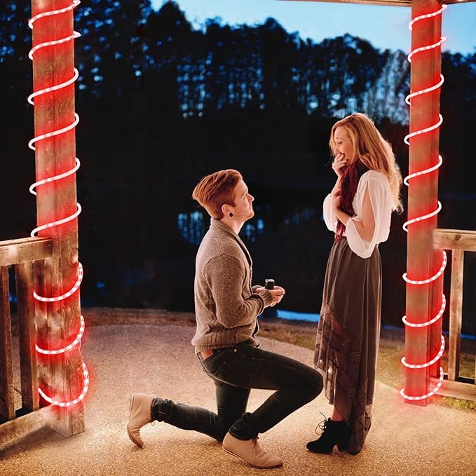 - [FLEXIBLE AND WIDLY USED]On Valentine's Day the high-quality flexible and foldable clear PVC tube is cleverly matched with red copper wire string light.It can easily to build the shapes you need, and decorate whatever you want with these sparkling and magical waterproof rope lights! It is an ideal decoration for courtyards, fences, bars, weddings, trees, decks, roofs, hotels, yards, gardens, terraces, streets, commercial buildings, shopping centers,Halloween,trampoline