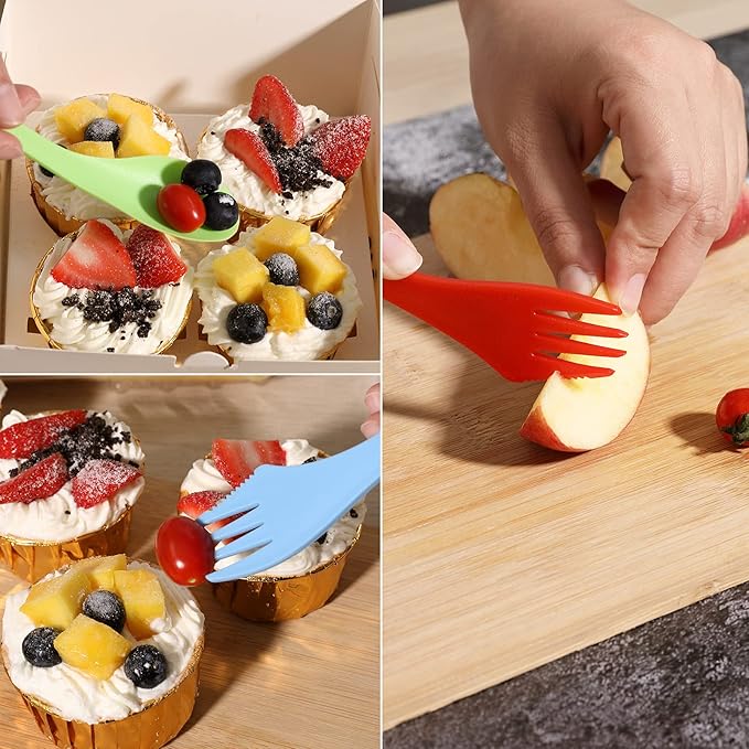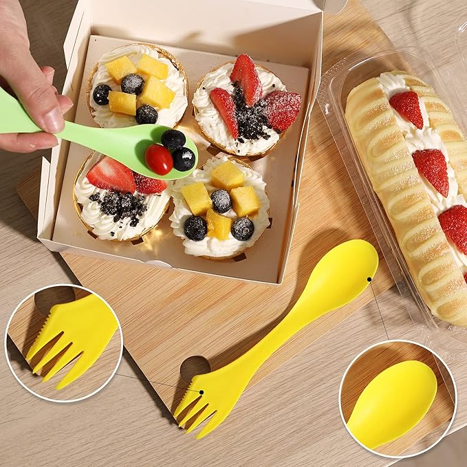 - Material: Plastic sporks are made of plastic, easy to clean.