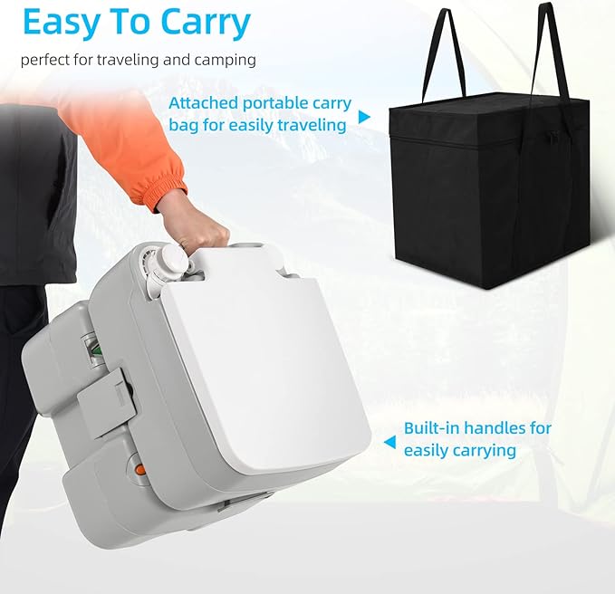 - ODORLESS & CONVENIENT: The portable flush toilet has a slide valve on the compost toilets for closing the waste to prevent leakage and peculiar smell when not in use; It is easy to detached by the two side latches and more convenient to carry due to its handle on tanks and comes with a 600D oxford carry bag