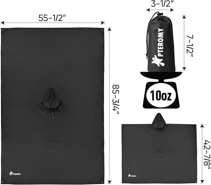 - [VERSATILE APPLICATION] One size fits most. PTEROMY rain ponchos adult is designed breathable and will keep you dry for outdoor activities of any kind such as hiking, camping, picnic, and outdoor game watching. Great gift idea for hunting gear for men, rain gear, or bushcraft gear