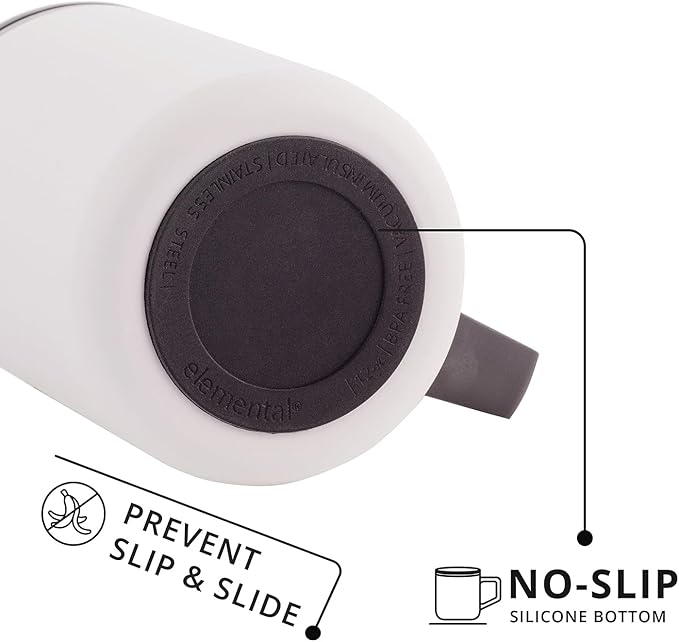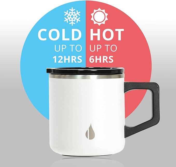 Elemental Insulated Coffee Mug - Triple-Wall Stainless Steel Summit Travel Cup for Hot and Cold Drinks - Thermal Coffee Mug with Lid and Handle for Camping, Office & Travel 12oz - White