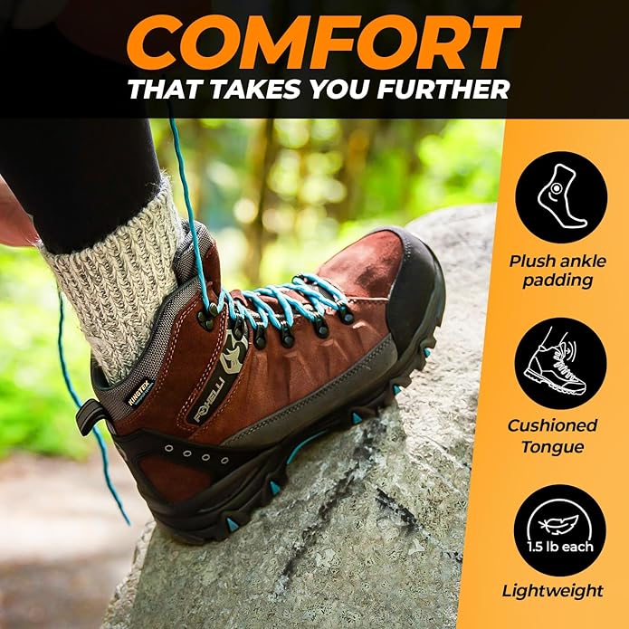 Foxelli Women’s Hiking Boots - Waterproof Lightweight & Breathable Suede Leather