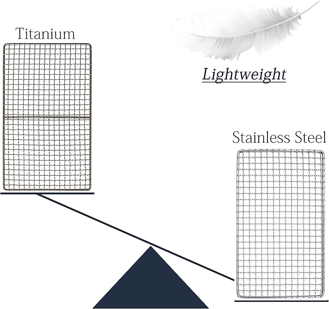 - 【HEALTHY & TITANIUM】Food grade titanium material is healthier.Raw meat and small fish can be roasted directly on the titanium grill.The characteristics of titanium material make it heat up quickly, but cool down quickly.
