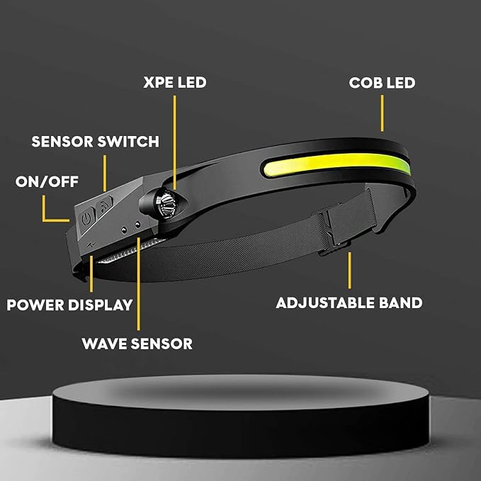 - 【5 LIGHT MODES AND INTELLIGENT SENSOR】The Rechargeable Headlamp Has 5 Brightness Modes: COB High/COB Low/XPE High/XPE High/XPE Low/COB& XPE Flash. Meanwhile The Led Headlamp Are Equipped With The Latest Smart Sensors, You Can Easily Control The Turn On And Off Of The Light By Waving Your Hand. Simply Turn The Led Torch On And Off With One Hand Movement.