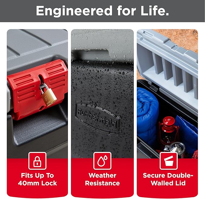 - READY FOR ADVENTURE: Designed for rigorous transport and rough use. Rubbermaid Action Packer storage box keep your supplies safe from rain and pests. Ideal for Outdoors, Adventure, Sports, Industrial and Commercial use