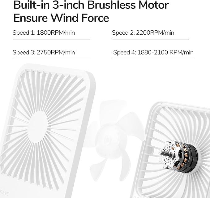 - Whisper Quiet Operations: This fan has a built-in brushless motor, which reduces noise in all directions, making the wind softer and quieter, and noise below 40db, so it's a great travel fan for sleeping