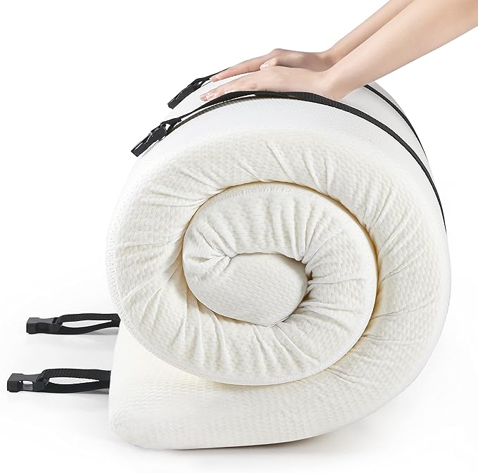 - Portable And Slip Resistant:The four corners of the mattress have a fixed rope, and the bottom of the mattress is made of slip resistant fabric, which can ensure that the durable topper won’t slip on slick floors, bed, RV or cot frames.Comes with a storage belt, roll up the mattress, you can easily store it.Take this camping mattress with you when traveling as a tent bed or sleeping in your camper van.Our sleeping foam pad provides great comfort on all your adventures.