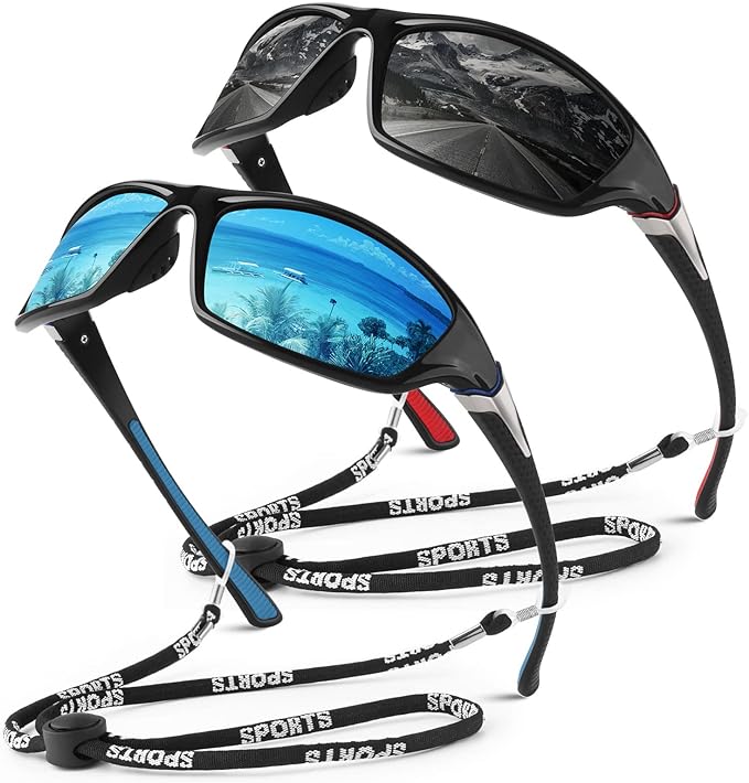 Polarized Sports Sunglasses for Men Women,Fishing Driving Rectangular Goggles UV400 Protection