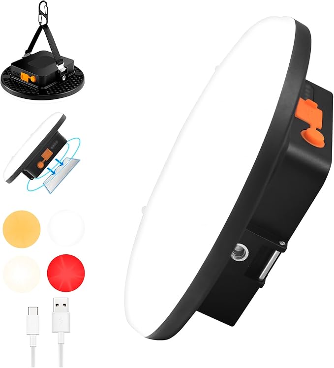- ๐ใ4Light Modes and DimmableใSimply Long Press the switch of the tent light to adjust the brightness, While short press it can adjust the color to meet your need,come with 4 light color mode,White/Warm/Warmwhite/Red FlashSOS.