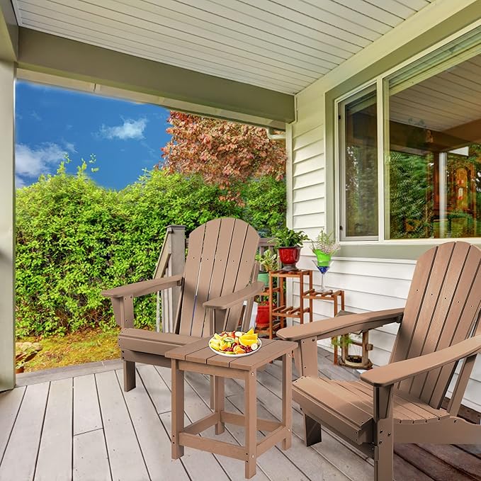 LZRS Adirondack Square Outdoor Side Table for Patio, Pool Composite Patio Table,HDPE End Tables for Backyard,Pool, Indoor Companion, Easy Maintenance & Weather Resistant(Teak)