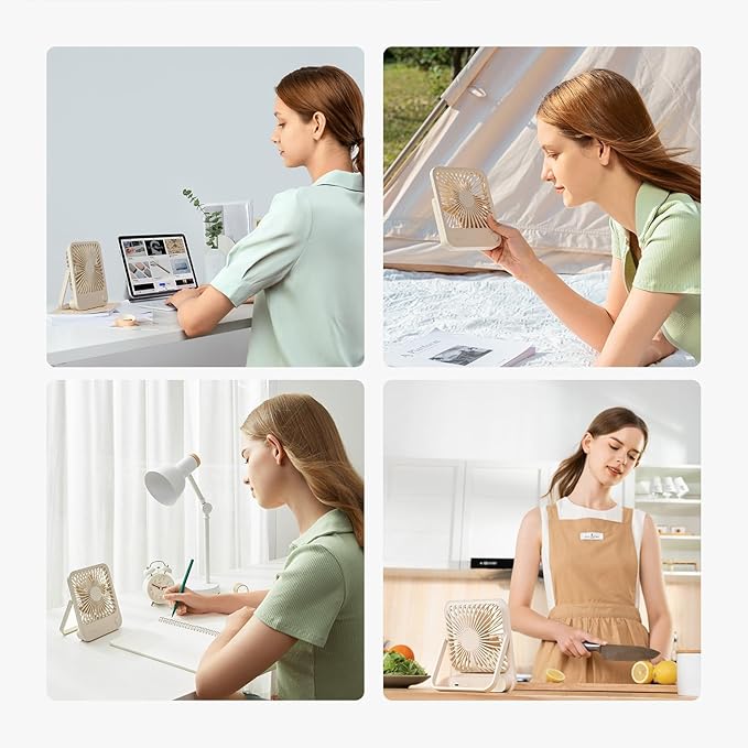 - Portable & Compact: The small desk fan weighs only 216g with cordless design, lighter, thinner, it's a portable fan for travel, office, desktop, bedroom, kitchen, camping, etc, practicality as a gift for women men
