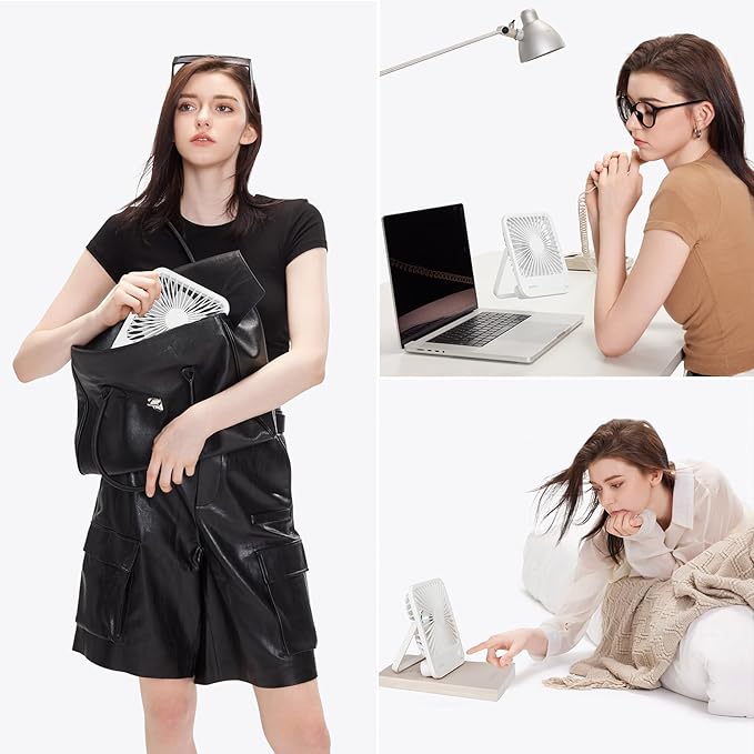 - Portable & Compact: The small desk fan weighs only 216g with cordless design, lighter, thinner, it's a portable fan for travel, office, desktop, bedroom, kitchen, camping, etc, practicality as a gift for women men