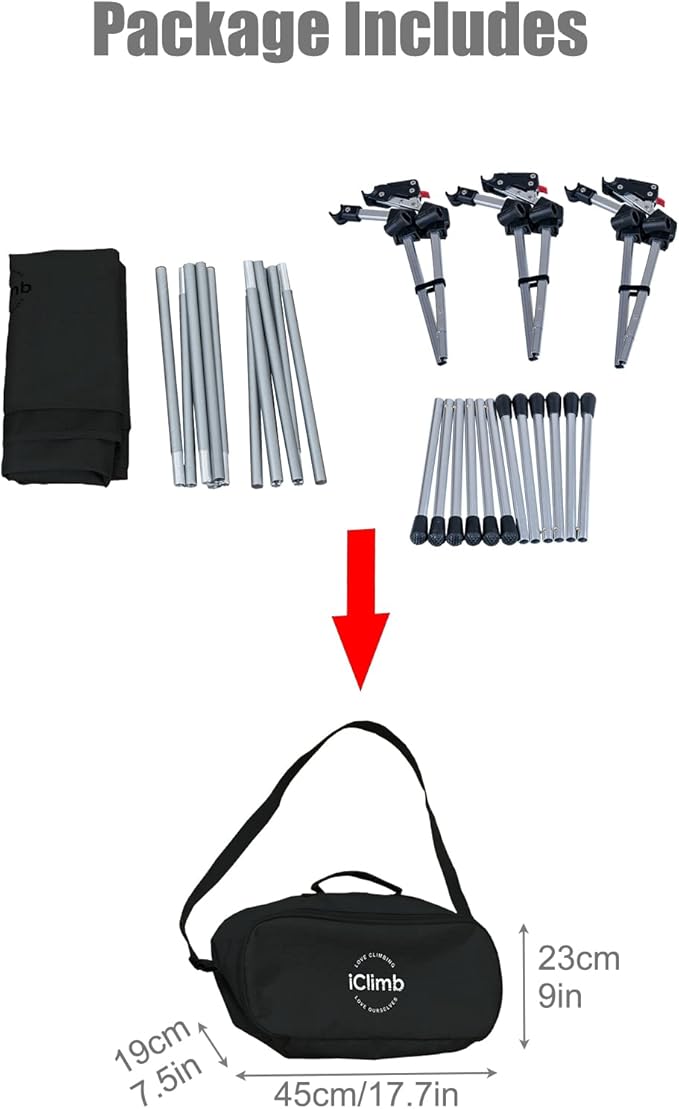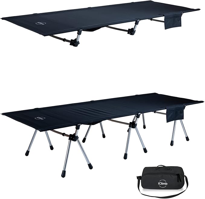 iClimb Super Easy Assemble Folding Cot Ultralight Compact Heavy Duty with Carry Bag for Adults Camping Backpacking (Black, Two Heights)