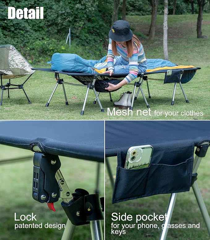 - COMPACT, Space saving, packed size 17.7” ×9” × 7.5”, much smaller than old bulky cots PORTABLE AND EASY CARRY, Storage bag with handle and adjustable shoulder strap, easy to carry everywhere