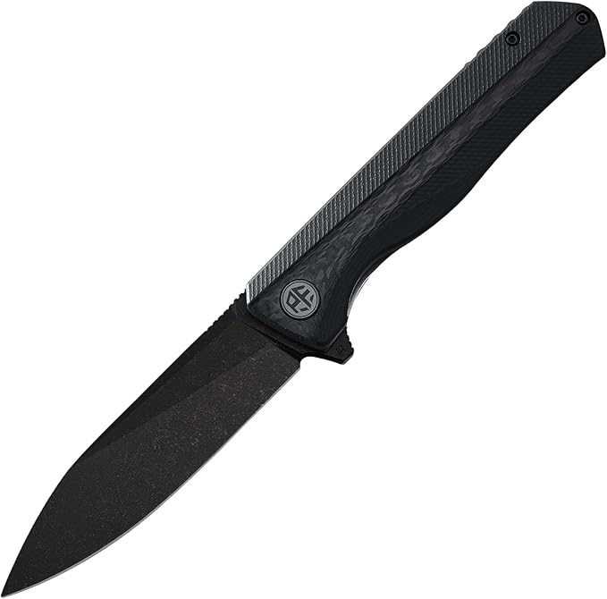 Petrified fish PF818,3.54" D2 Blade,104g G10 Handle Flipper Folding knife (Carbon fiber with G10 handle, Black stonewashed)