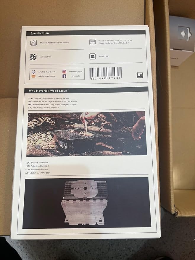Fire Maple Maverick Wood Stove | Portable Durable Stainless Steel Campfire Stove with Grill | Ideal for Camping Backpacking Hiking Trips (Square Version)