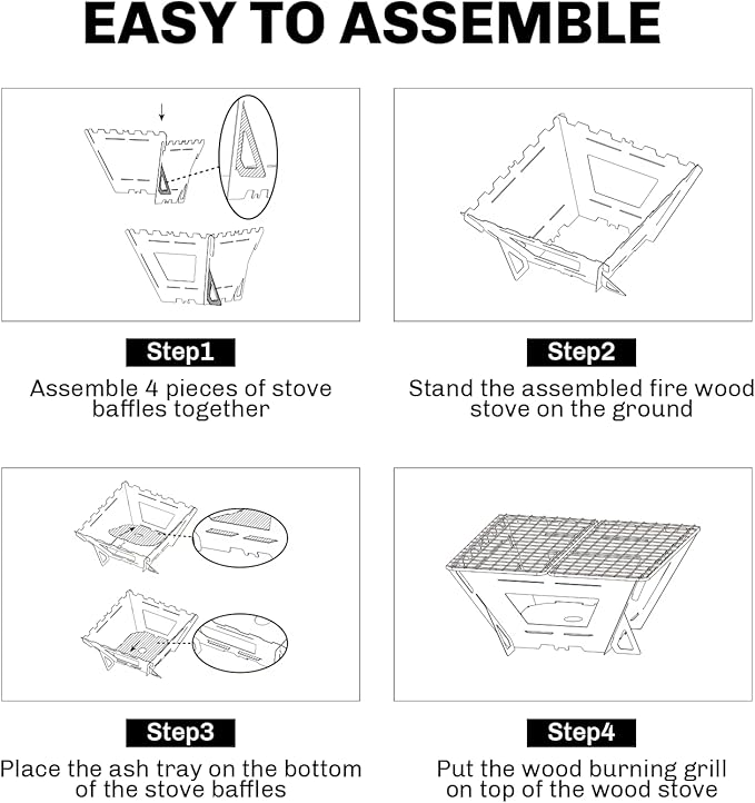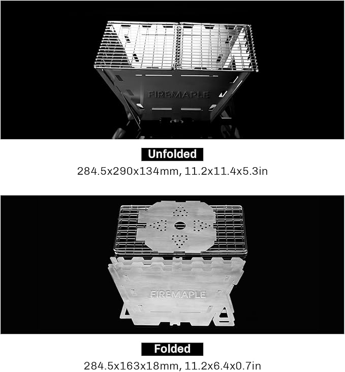 - FOLDABLE AND PORTABLE: The wood burning stove with compact size and can be packed in a storage bag, which makes it convenient to carry and portable. Unfolded size: 284x290x134mm, folded size: 284x163x18mm. Net weight: 1170g/2.6lb.