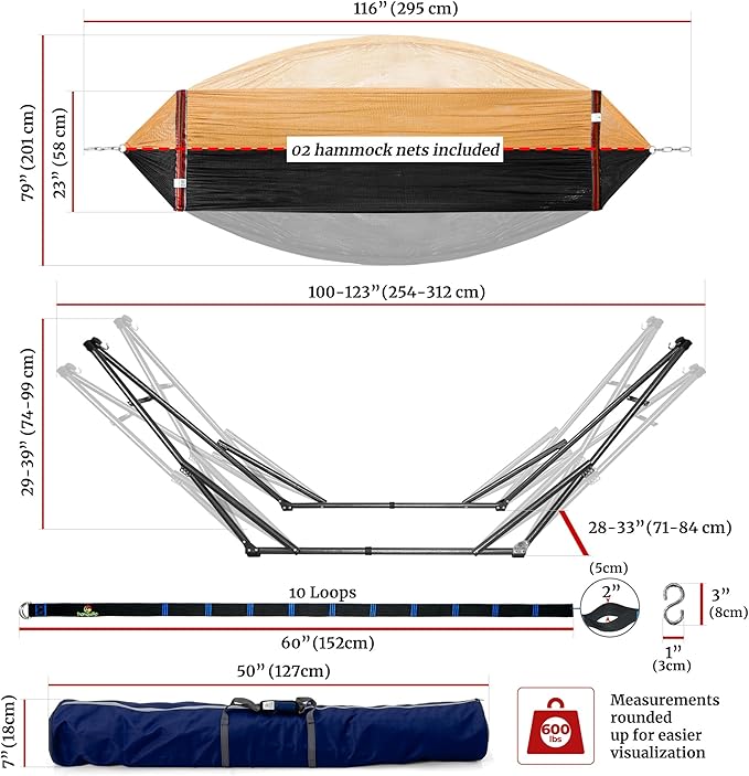 - UNBEATABLE VALUE & ENDLESS RELAXATION: This incredible full combo includes EVERYTHING you need for ultimate relaxation! Get 1 Hammock with Stand, 1 Bonus Hammock Net, 2 Tree Straps, and 2 Storage Bags. Set up anywhere and enjoy the sunshine with your loved ones. Totally save your precious time and budget to get FULL SAVING COMBO TRANQUILLO HAMMOCK just in 1 click