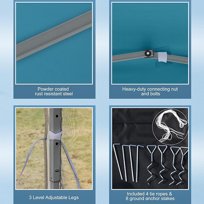 - Easy Pop-Up Canopy Tent: Don't spend time struggling. With our pop-up canopy, set up and tear down is easy. Take it out of the bag, unfold the frame, stake it down, attach the top, and adjust the legs. In a short span of time, you can fit a crowd without making them feel crowded.