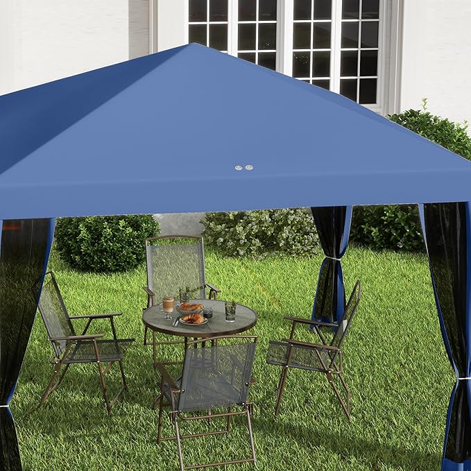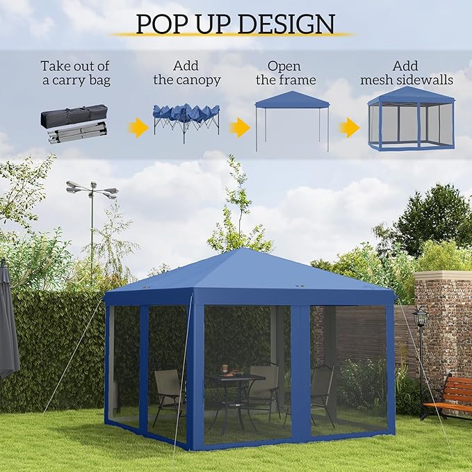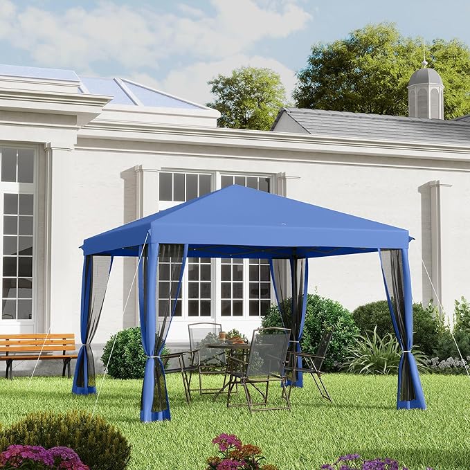 Outsunny 10' x 10' Pop Up Canopy Tent with Netting, Instant Gazebo, Screen House Room with Carry Bag, Height Adjustable, for Outdoor, Garden, Patio, Camping, Blue
