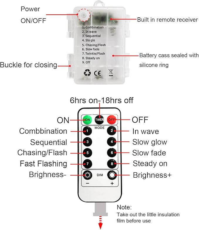 - 【Rich Function】:battery powered, warm white, with Remote, 8 modes, shatterproof and waterproof, memory function, dimmable, timer.