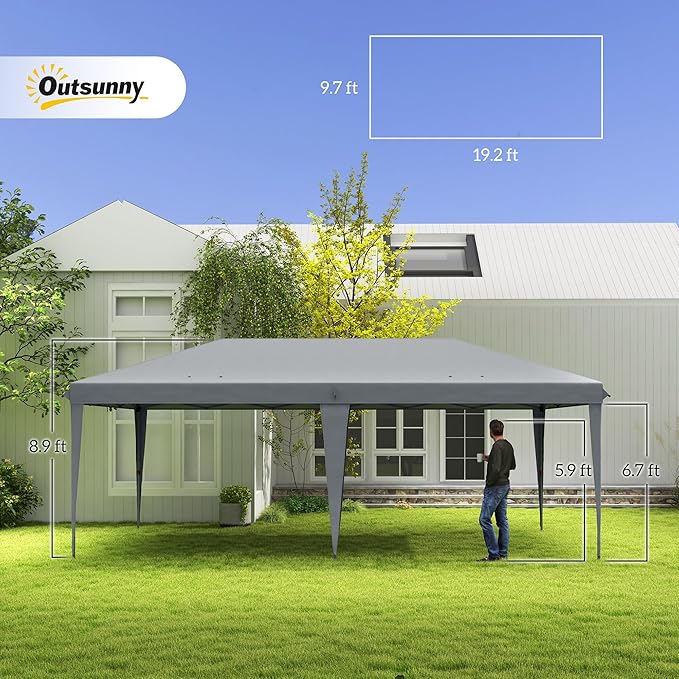 Outsunny 10' x 20' Pop Up Canopy Tent, Upgraded Heavy Duty Tents for Parties, Outdoor Instant Gazebo Sun Shade Shelter with Carry Bag, for Catering, Events, Wedding, Backyard BBQ, Gray