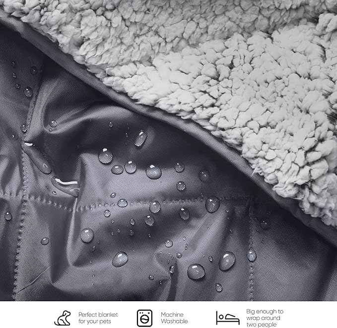 - ULTRASONIC QUILTING TO MAXIMIZE SAFETY: Our waterproof blanket uses ultrasonic quilting technology to stitch together the layers without leaving any holes, ensuring that the blanket is 100% waterproof. Ensuring that water won't seep through, making it perfect as an extra layer during winter when temperatures get freezing! Whether you're relaxing in the backyard, or camping out in nature's backyard - our warm and cozy outdoors Sherpa blanket will keep everyone dry and happy.